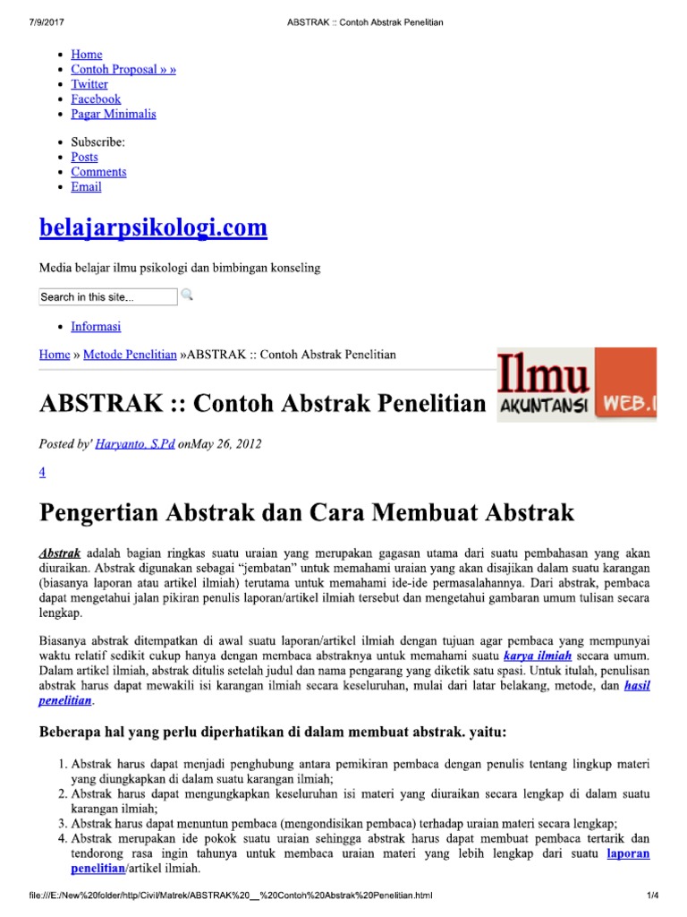 ABSTRAK __ Contoh Abstrak Penelitian.pdf from imgv2-1-f.scribdassets.com Perencanaan tingkat puskesmas yang dilaksanakan di kawasan perkotaan harus memperhatikan permasalahan kesehatan berdasarkan. Kalau kalian bisa melihat contoh dibawah ini dan mempelajari bagaimana contoh abstrak bahasa indonesia dan inggris ini merupakan contoh cara membuat abstrak untuk pdf abstrak suatu karya ilmiah. Contoh abstrak proposal tesis dapat dilihat pada lampiran 4. Abstrak kajian pengaruh fizik pdf. Kumpulan contoh proposal judul tesis pendidikan bahasa inggris abstrak tesis bahasa inggris dengan judul. Prpgram pasca sarajan magister kenotariatan universitas diponegoro semarang 2008. Abstrak adalah gambaran dari suatu makalah, karya tulis maupun skripsi secara singkat, padat dan mudah dipahami oleh pembaca. Pengaruh lingkungan fisik sekolah terhadap motivasi belajar.